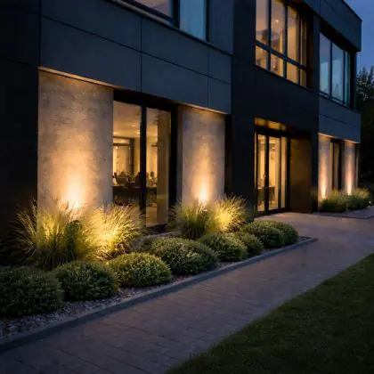 Beleuchtung mit Sensor schaltet sich nur ein, wenn ein bestimmtes Signal empfangen wird. Dies senkt die Energiekosten. Die (integrierten) Sensoren reagieren auf Dunkelheit (Dämmerungsschalter) und/oder Bewegung (Bewegungsmelder).