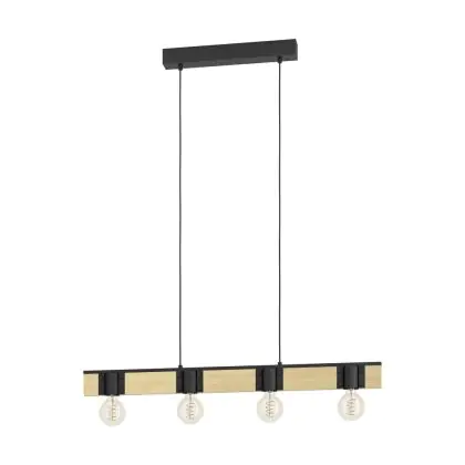 Eglo Pendelleuchte Bailrigg Stahl Holz Schwarz Braun | IP20 - Geeignet für 4x E27
