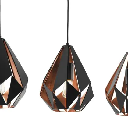 Eglo Pendelleuchte Carlton 1 Schwarz, Bernstein | Geeignet für 3x E27