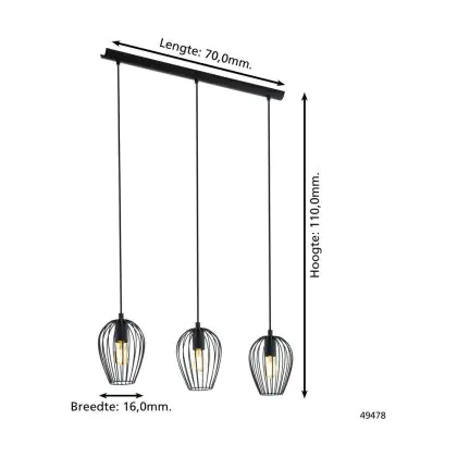 Eglo Pendelleuchte Newtown Stahl Schwarz | IP20 - Geeignet für 3x E27