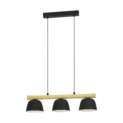 Eglo Pendelleuchte Sherburn Stahl Holz Schwarz Braun | IP20 - Geeignet für 3x E27