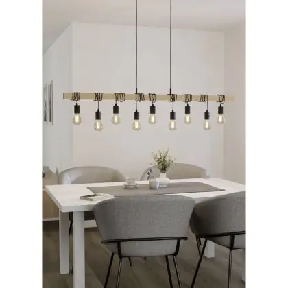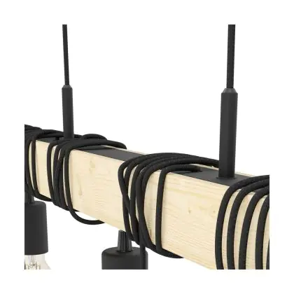 Eglo Pendelleuchte Townshend Holz Stahl Braun Schwarz | IP20 - Geeignet für 9x E27