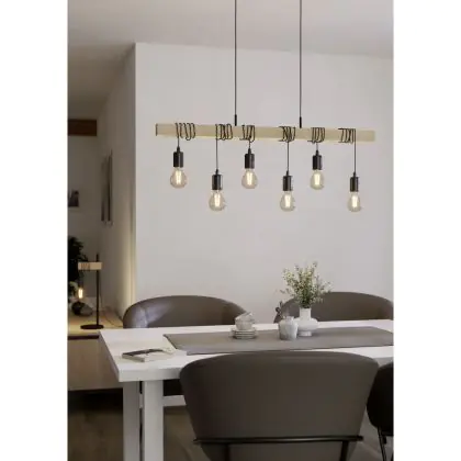 Eglo Pendelleuchte Townshend Stahl Holz Schwarz Braun | IP20 - Geeignet für 6x E27