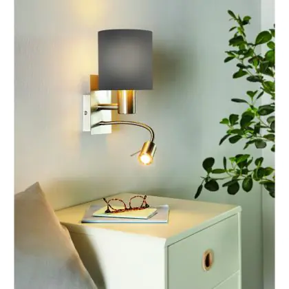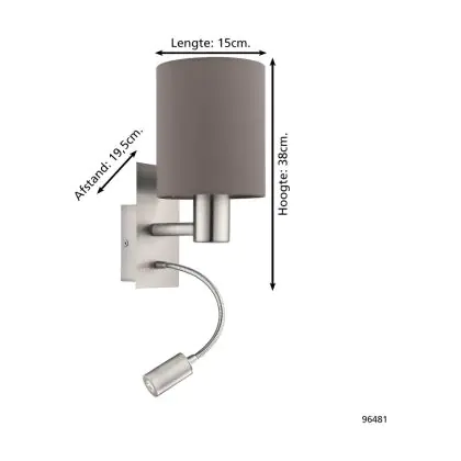 Eglo Wandleuchte Pasteri Stahl Satin-Nickel 40 | IP20 - Inkl. Spot und Exkl. 1x E27