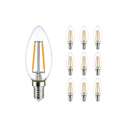 Mehrfachpackung 10x LED E14 Kerze Fadenlampe Klar 2.5W 250lm - 827 | Dimmbar - Ersatz für 25W