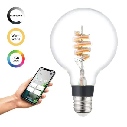 Cette ampoule Eglo Connect.Z Smart LED Globe E27 Filament Claire 4.9W 400lm - 830 Blanc Chaud + RGB | Dimmable - Remplacement 40W est l’alternative idéale pour la remplacement de votre ampoule classique de 40 W. La technologie LED intégrée vous offrira de nombreux avantages. Les ampoules à incandescence traditionnelles ont une durée de vie limitée. Cette alternative LED vous permettra de profiter d’un éclairage durable et fiable.