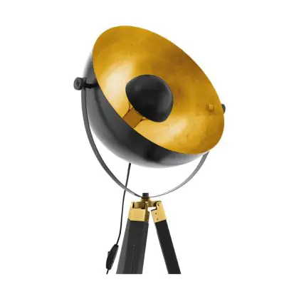 Eglo Lampadaires Salon Covaleda Bois Échantillon Noir Dorée | IP20 - Convient pour 1x E27