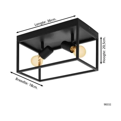 Eglo Plafonnier Silentina Échantillon Noir | IP20 - Convient pour 2x E27