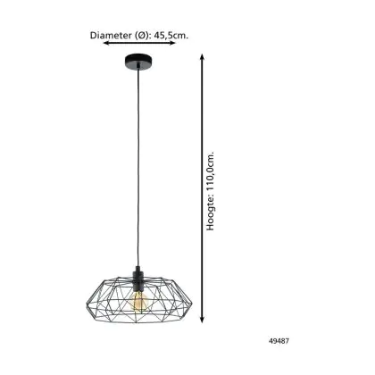 Eglo Suspension Luminaire Carlton 2 Échantillon Noir | IP20 - Convient pour 1x E27