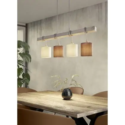 Eglo Suspension Luminaire Townshend 2 Échantillon Bois Blanc Brun | IP20 - Convient pour 4x E27