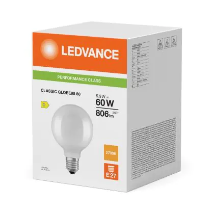 Cette ampoule Ledvance Classic LED Globe Dépolie 5.9W 806lm - 827 Blanc Très Chaud | Remplacement 60W est l’alternative idéale pour la remplacement de votre ampoule classique de 60 W. La technologie LED intégrée vous offrira de nombreux avantages. Les ampoules à incandescence traditionnelles ont une durée de vie limitée. Cette alternative LED vous permettra de profiter d’un éclairage durable et fiable.