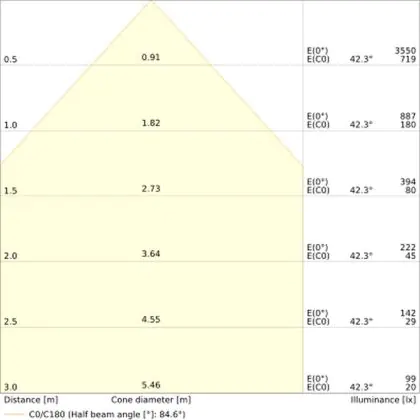 ![]() Le code couleur se compose de l'indice de rendu des couleurs (IRC) et de la température de couleur (Kelvin). Le premier chiffre indique le rendu des couleurs (1 = très mauvais rendu des couleurs, 9 = meilleure authenticité des couleurs). Le deuxième et troisième chiffre indiquent la température de la couleur. Exemple : Le code couleur "830" indique que la lampe a un bon rendu des couleurs (8) et une couleur de lumière blanche chaude (30 = 3000K). |