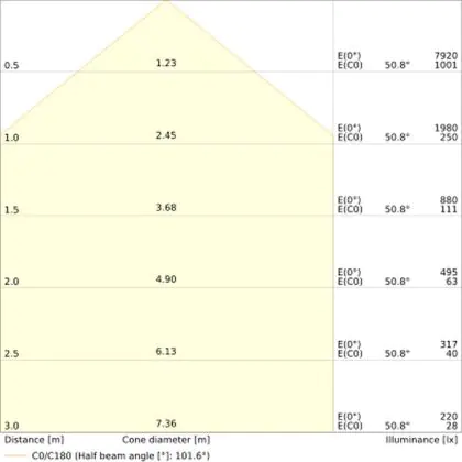 Un angle de diffusion est également appelé angle de rayonnement et indique l'angle du faisceau lumineux provenant d'une source lumineuse. Plus l'angle de diffusion en degrés (D) est petit, plus le faisceau est étroit. Vous voulez en savoir plus? Alors lisez notre blog.