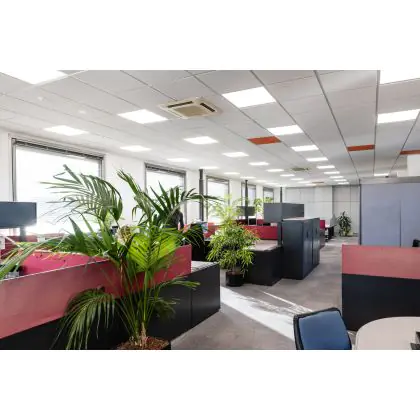 Les dimensions les plus courantes des panneaux LED sont 60x60cm (carrés) et 30x120cm (rectangulaires). Ce sont des tailles standard pour presque tous les plafonds/ des plafonds à grille. D'autres dimensions sont également disponibles, telles que 20x120cm ou 15x150cm.