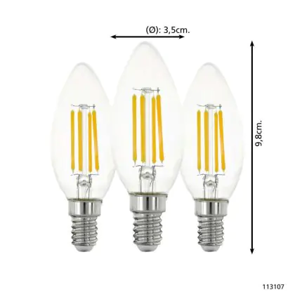 Description Lot 3x Eglo LED Bougie E14 Filament Claire 21W 806lm - 827 Blanc Très Chaud | Remplacement 60W