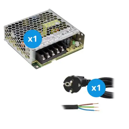 Mean Well Driver | LRS7524 | IP20 | 24V | 75W + Câble D'Alimentation 2m avec Terre