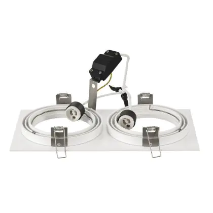SLV New Tria 2 Spot Aluminium Blanc | Convient pour 2x GU10 (AR111) est un spot LED encastrable. Ce luminaire est conçu pour un éclairage d’accentuation pour un usage domestique ou bien professionnel. Fixture Retrofit, ce spot LED SLV en Aluminium a besoin d’une place nécessaire de mm de largeur et mm de profondeur. Ce luminaire est compatible avec une ampoule GU10, il est important de faire attention si vous décidez de changer d’ampoule.